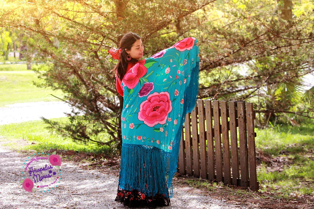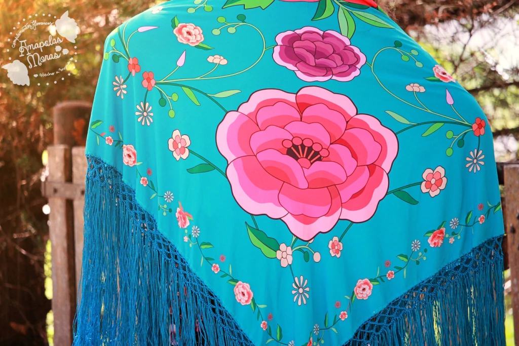Te presento la nueva linea de mantones de seda estampados que parecen un manton de manila bordado! Estampa diseñada especialmente por Amapolas Moras.